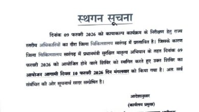 विशालपुर नईदुनिया दिलीप टंडन सारंगढ़। जिला चिकित्सालय सारंगढ़ में 09 फरवरी 2026 को प्रस्तावित प्रधानमंत्री सुरक्षित मातृत्व अभियान (पीएमएसएमए) शिविर…