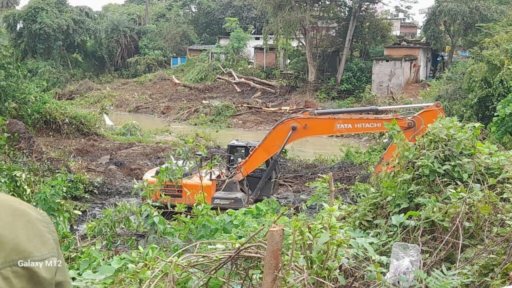 साफ सफाई करते हुए,नगरपालिका पोकलेन मशीन