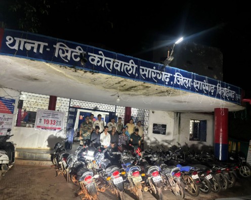 सारंगढ़।*सिटी कोतवाली पुलिस ने मोटरसाइकिल चोर गिरोह पर बड़ी कार्यवाही करते हुए 30 चोरी की गई मोटरसाइकिलों को बरामद कर लिया है। इनकी कुल कीमत करीब 18 लाख रुपए आंकी गई है। पुलिस ने इस मामले में चोरी करने वाले और खरीद-फरोख्त करने वाले कुल 6 आरोपियों को गिरफ्तार कर न्यायिक रिमांड पर जेल भेज दिया है।