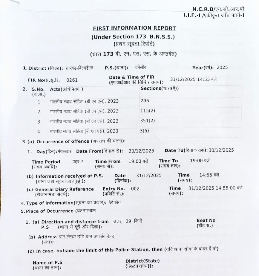 पीड़ित की लिखित शिकायत पर थाना कोसीर में आरोपियों के विरुद्ध धारा 296, 115(2), 351(2), 3(5) BNS के तहत अपराध पंजीबद्ध कर विवेचना में लिया गया है। पुलिस द्वारा आरोपियों के कॉल डिटेल रिकॉर्ड (CDR) की जांच भी किए जाने की बात कही गई है।