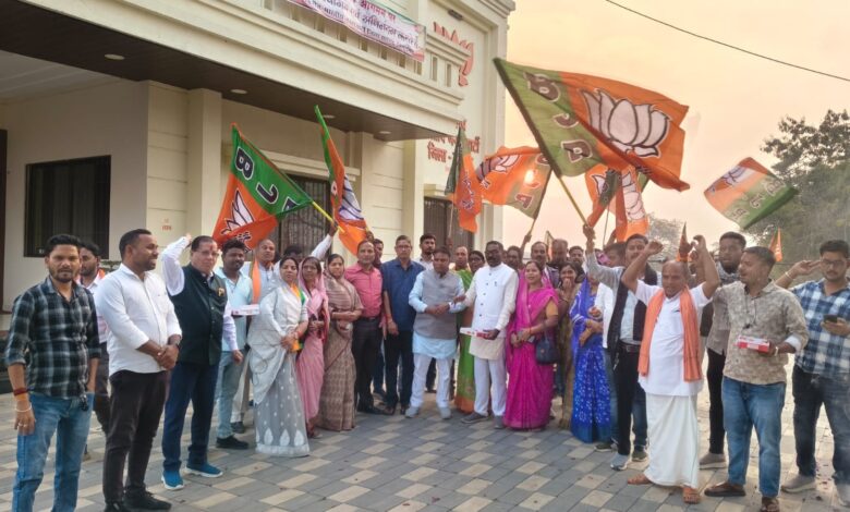 इस ऐतिहासिक अवसर पर भाजपा जिला सारंगढ़-बिलाईगढ़ कार्यालय में भव्य उत्सव का आयोजन किया गया। ढोल-नगाड़ों की थाप, फटाकों की गूंज और कार्यकर्ताओं के जोशीले नारों से पूरा परिसर गूंज उठा। “जय श्रीराम”, “जय भारत” और “भारत माता की जय” के उद्घोष के साथ कार्यकर्ताओं ने अपनी खुशी का इजहार किया।