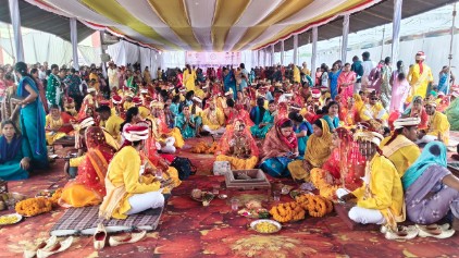 पारंपरिक रीति-रिवाजों और शहनाइयों की गूंज के बीच संपन्न हुए इस सामूहिक विवाह समारोह ने पूरे मंडी परिसर को उत्सव में बदल दिया और नवदंपतियों ने नए जीवन की शुरुआत की।