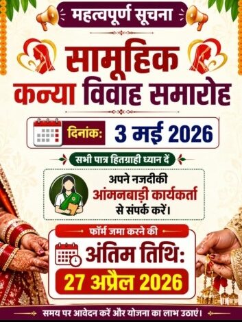 फॉर्म जमा करने की अंतिम तिथि 27 अप्रैल 2026 निर्धारित की गई है। अधिकारियों ने अपील की है कि समय रहते आवेदन कर इस योजना का लाभ उठाएं, ताकि अधिक से अधिक जरूरतमंद परिवारों की बेटियों का विवाह सम्मानपूर्वक संपन्न कराया जा सके।